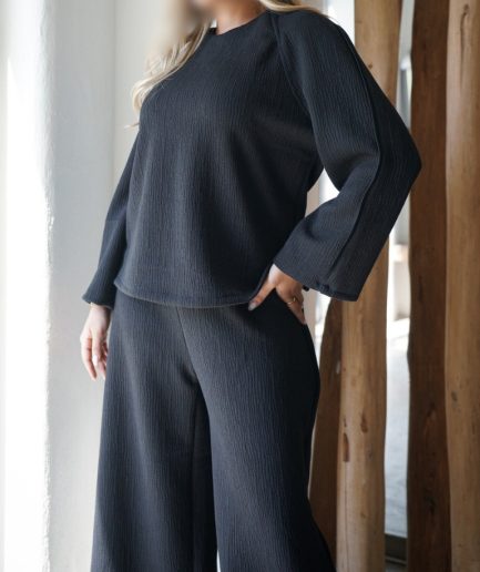 ست بلوز و شلوار مشکی مغزی دار زنانه