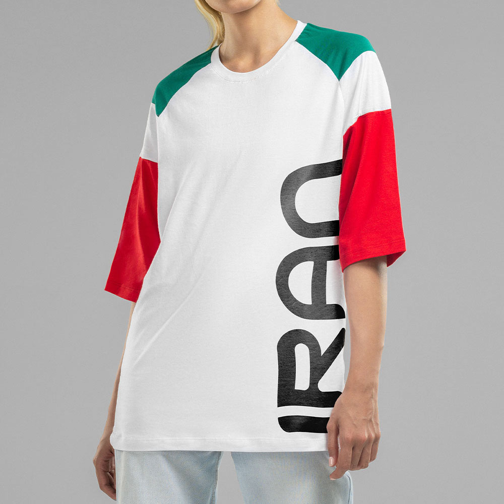 تی شرت یقه گرد زیبای ایران در طرحی با سه رنگ سبز سفید و قرمز
