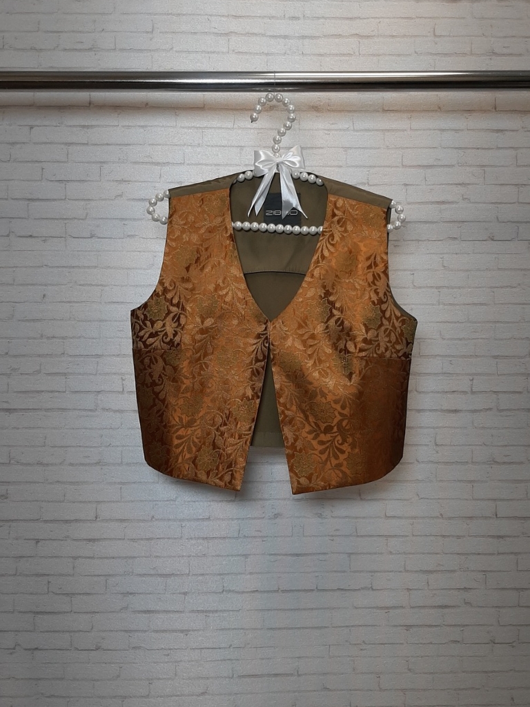 یقه هفت ، دارای طرح گل طلایی ، آستین حلقه ای