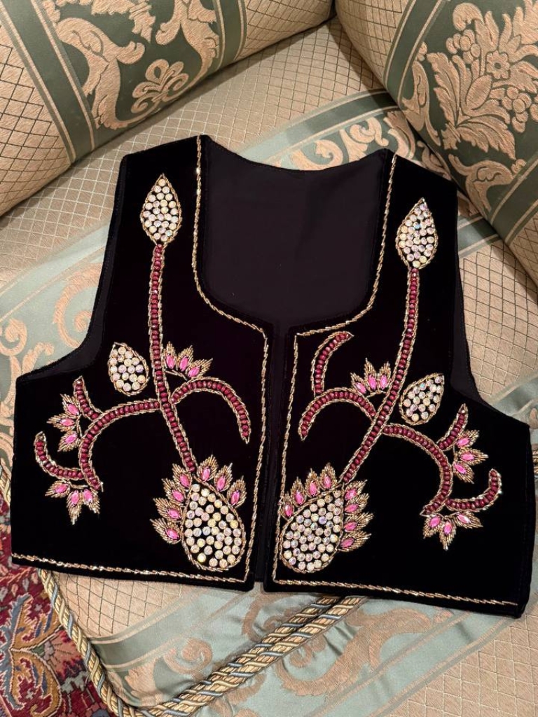 جلیقه مشکی شاخ و برگ صورتی زنانه