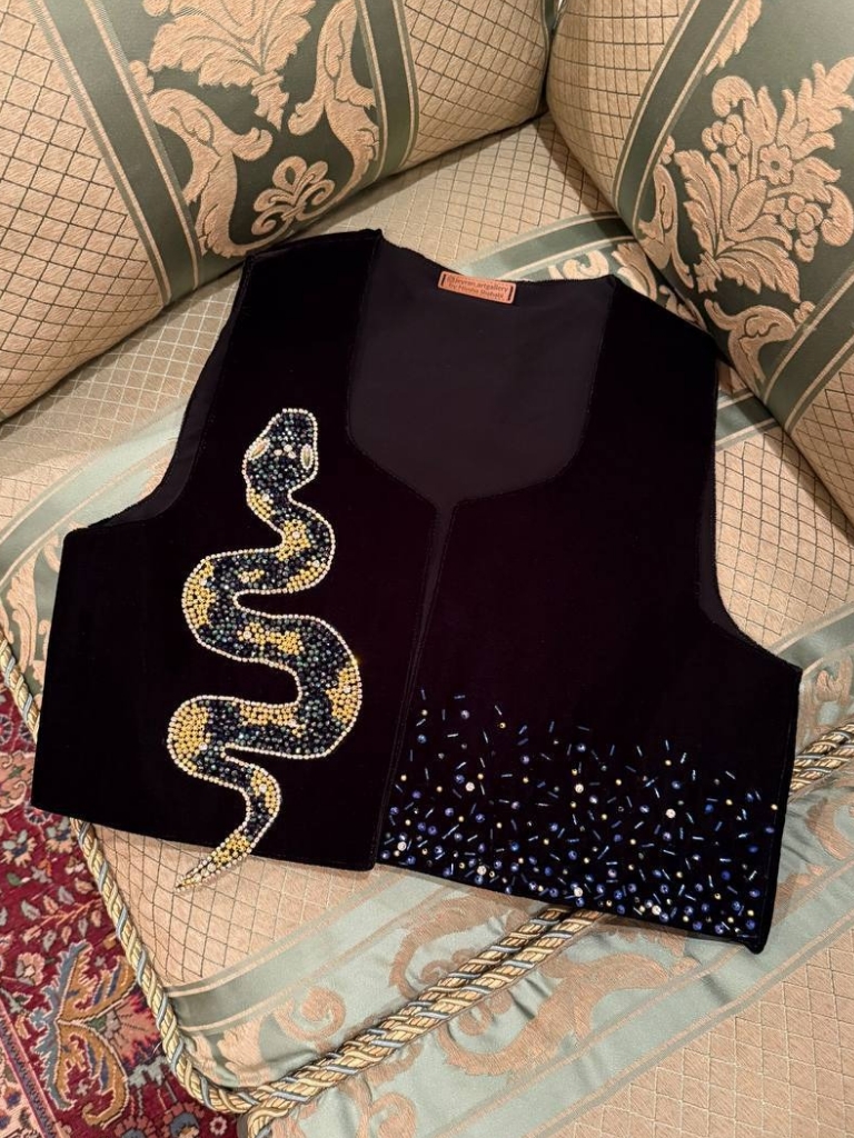 یقه هفت ، دارای سنگ های نقره ای طلایی با طرح مار