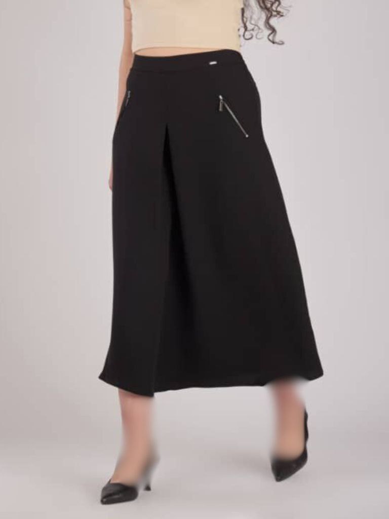 دامن مشکی کرپ ، جلو دارای تک پیلی زیبا، پشت کمر کش