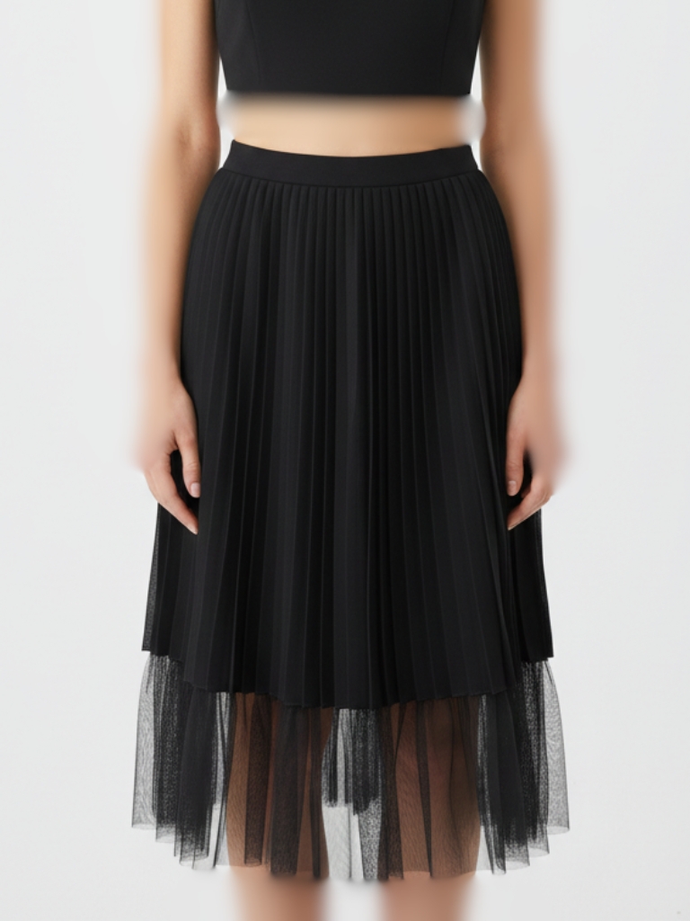 دامن پلیسه میدی پایین تور ، استایل رگولار ( آزاد )