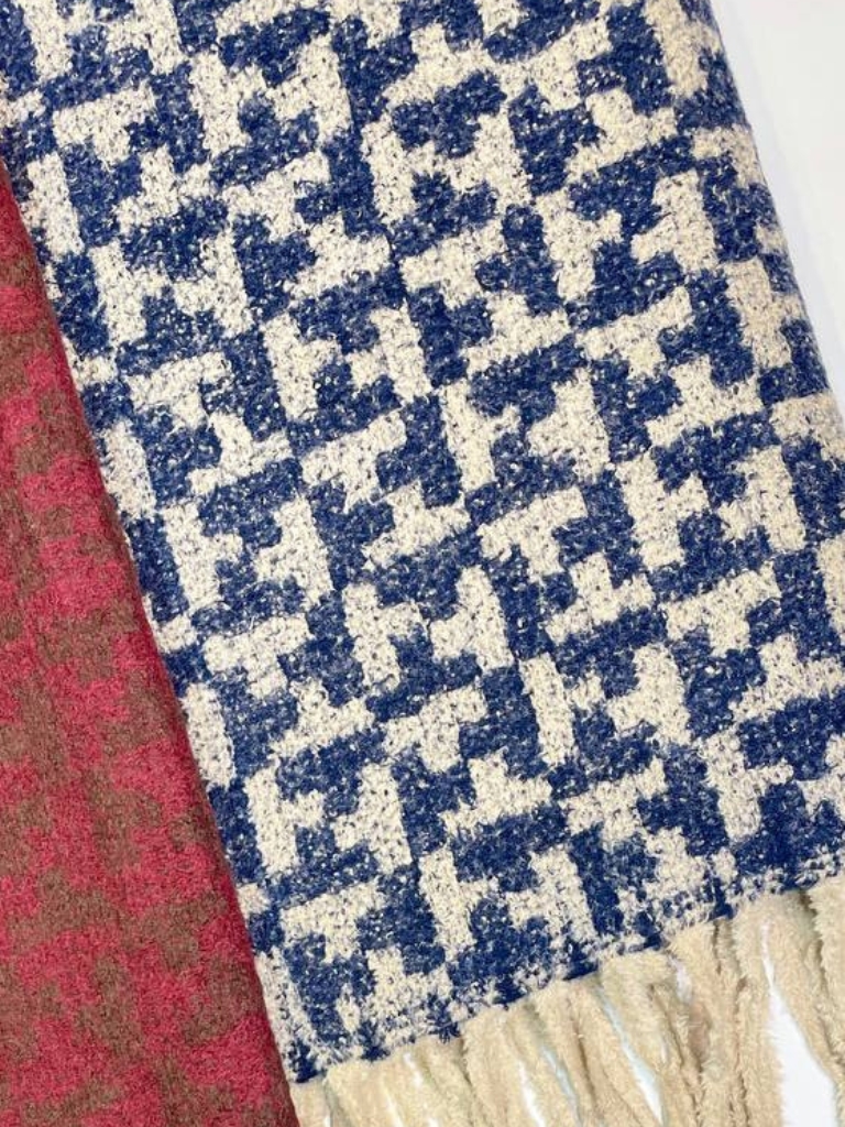 شال موهر سرمه ای طرح دار