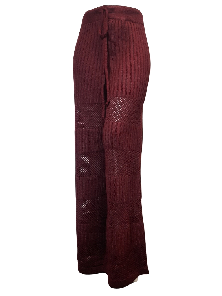 شلوار بافت حفره ای زرشکی زنانه