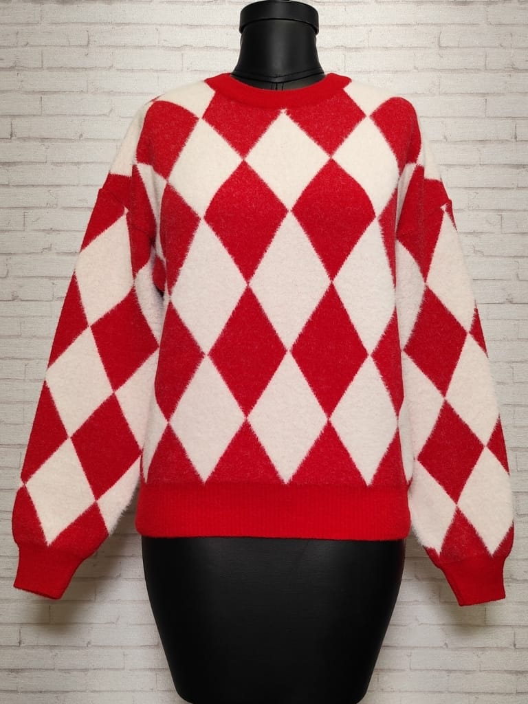 یقه گرد ، دارای طرح لوزی ، استایل رگولار ( آزاد )