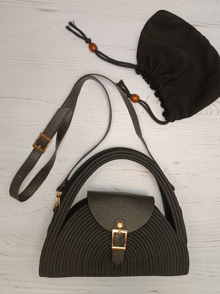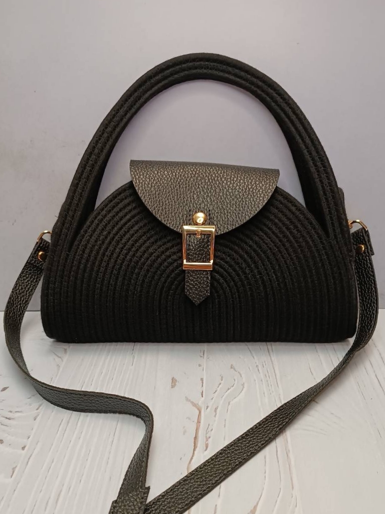 کیف دستی زنانه ، قیطان نخ پنبه، بیضی مشکی