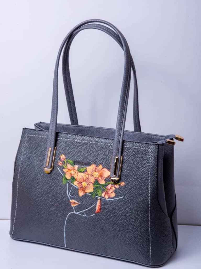 دارای دو دسته متصل به کیف ، دارای زیپ ، نقاشی طرح صورت دختر