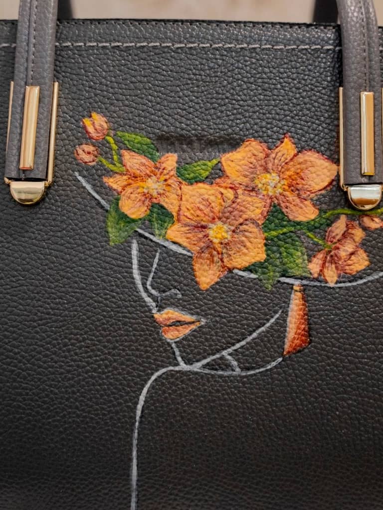 کیف دستی مجلسی ، دارای نقاشی کار دست در بستر چرم طبیعی